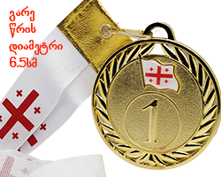 მედლები "ოქრო" - "ვერცხლი" - "ბრინჯაო" ცენრში მოთავსდება თქვენთვის სასურველი ნებისმიერი სირთულის შავ-თეთრი ანდა ფერადი გრაფიკული გამოსახულება, რომელიც იბეჭდება მეტალის ფირფიტაზე. შიდა წრის დიამეტრი - 4.5სმ გარე წრის დიამეტრი - 6.5სმ იხილეთ ნიმუში: |